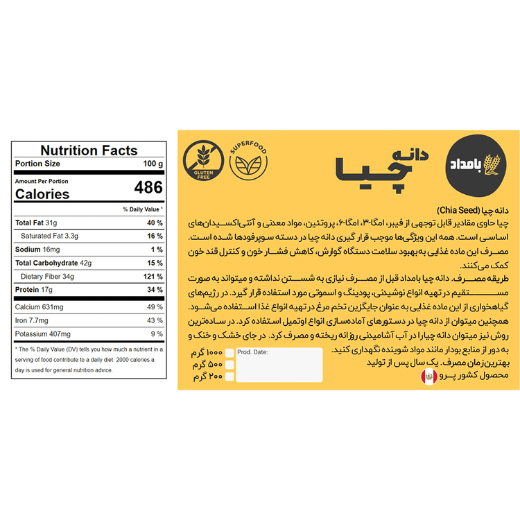 ✅1. چیا سرشار از مواد مغذی با کالری کم می باشد. فیبر، پروتئین، چربی، کلسیم، منگنز، منیزیم، فسفر، روی (زینک)، ویتامین B3 ،B1و B2 است. وجود این مواد مغذی در 28 گرم از یک خوراکی، بسیار قابل توجه است. این مقدار دانه چیا 137 کالری انرژی و 1 گرم کربوهیدرات قابل هضم دارد. 2 قاشق غذاخوری دانه چیا تنها 101 کالری دارد. به همین دلیل دانه چیا از بهترین منابع کم کالری و مغذی در جهان میباشد. این دانه یک غله کامل محسوب شده و بدون گلوتن است.